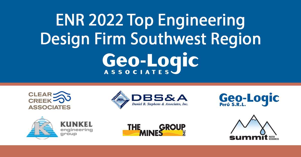 GLA and its wholly owned subsidiaries, including Clear Creek Associates, Daniel B. Stephens & Associates, Kunkel Engineering Group, Geo-Logic Peru, Summit Water Resources, and The MINES Group, was ranked among the Engineering News-Record (ENR) Top 500 Design Firms (#253), in addition to the Top Design Firms in the Southwest Region (#22). Companies listed do engineering nationally and internationally, and are ranked according to 2021 revenue. GLA is an employee-owned, multidisciplinary environmental, civil and geotechnical engineering consulting firm with more than 250 professionals in 26 offices in the U.S. and abroad. Together, we provide multidisciplinary geologic, engineering, water, and environmental consulting for landfills, mines, contaminated sites, municipal projects, natural resources, and water resources.
