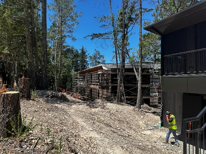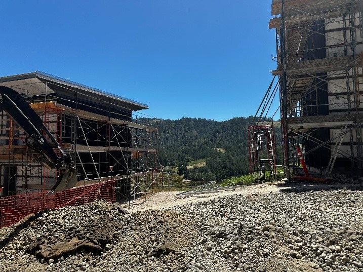 RGH provided geotechnical recommendations for the Back of House (BOH) improvements for the resort, including a parking lot, a pre-manufactured metal building support structure, and two storage tanks, and connecting the fire-access road to Madrone. Our recommendations included soil nail wall design for the uphill side of the new parking lot and a soldier beam and lagging wall to support the connecting roadway. We provided updates for these recommendations throughout construction of the BOH improvements. At the same time, we also evaluated depth to bedrock for the construction on guestroom buildings, the Presidential Suite, and the Long Barn area of the resort.